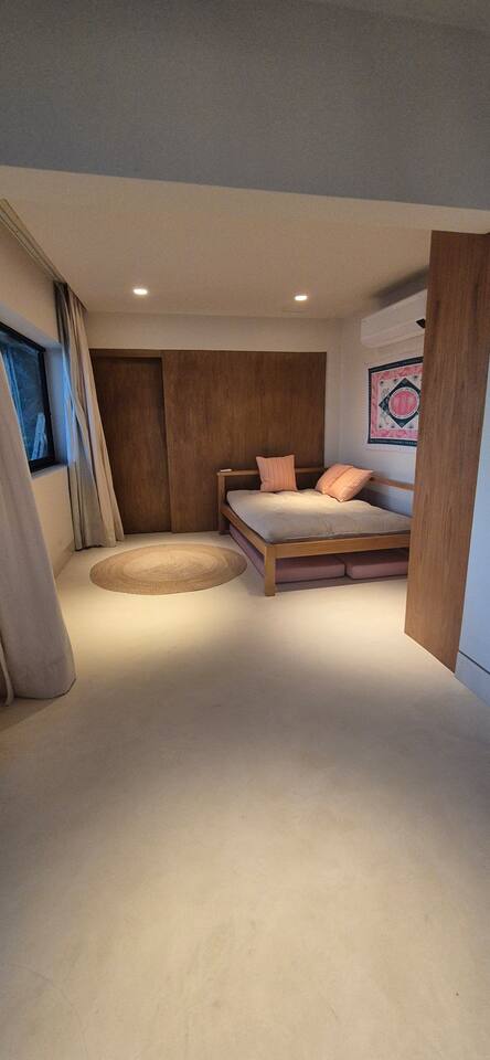 This is a private condominio under complete renovation. We apologise for the house still under renovation. During your stay there won't be construction work. We are located next to Vidigal community. It is peaceful and safe. We don't recommend to go without a guide or our directions.